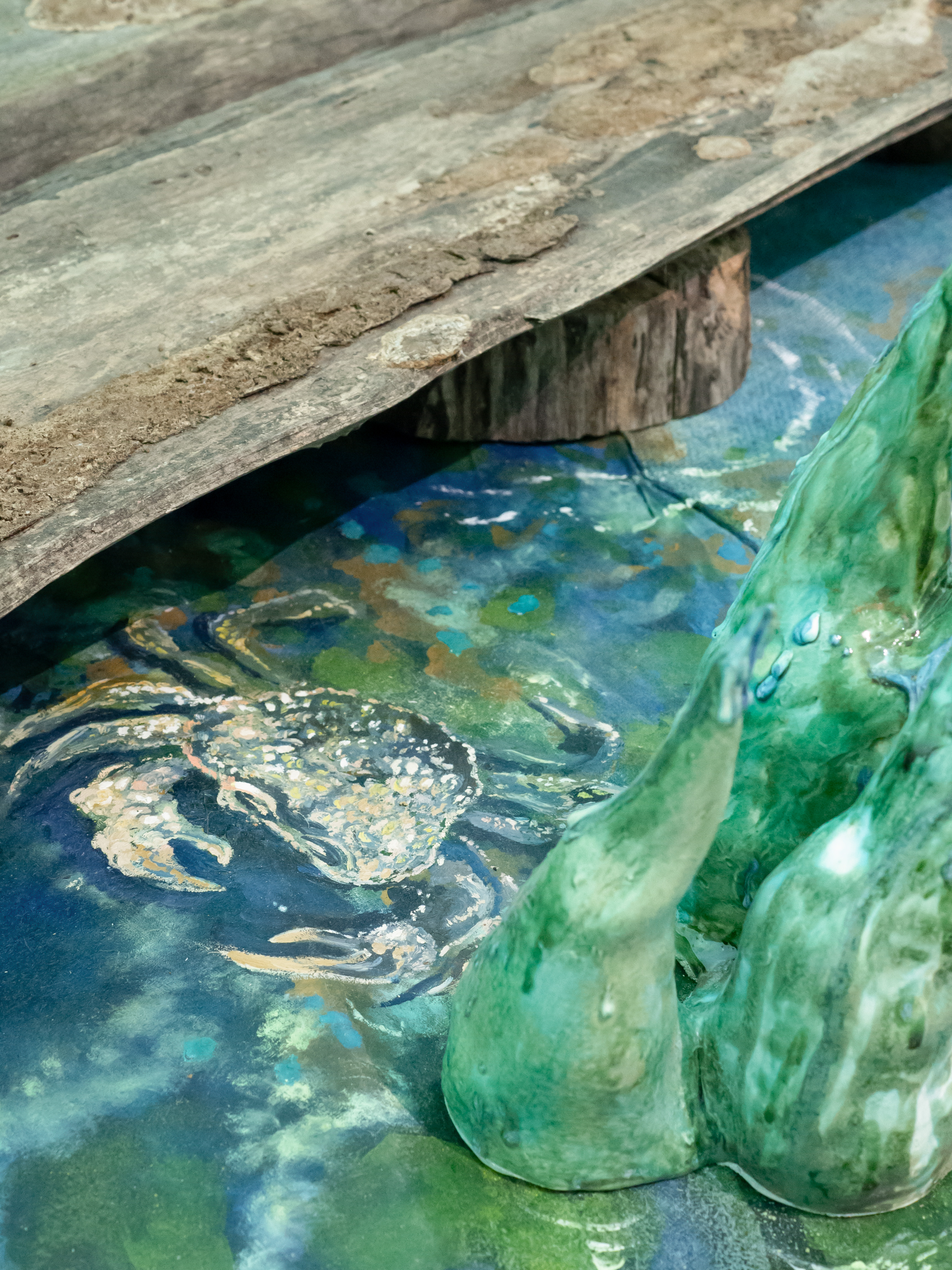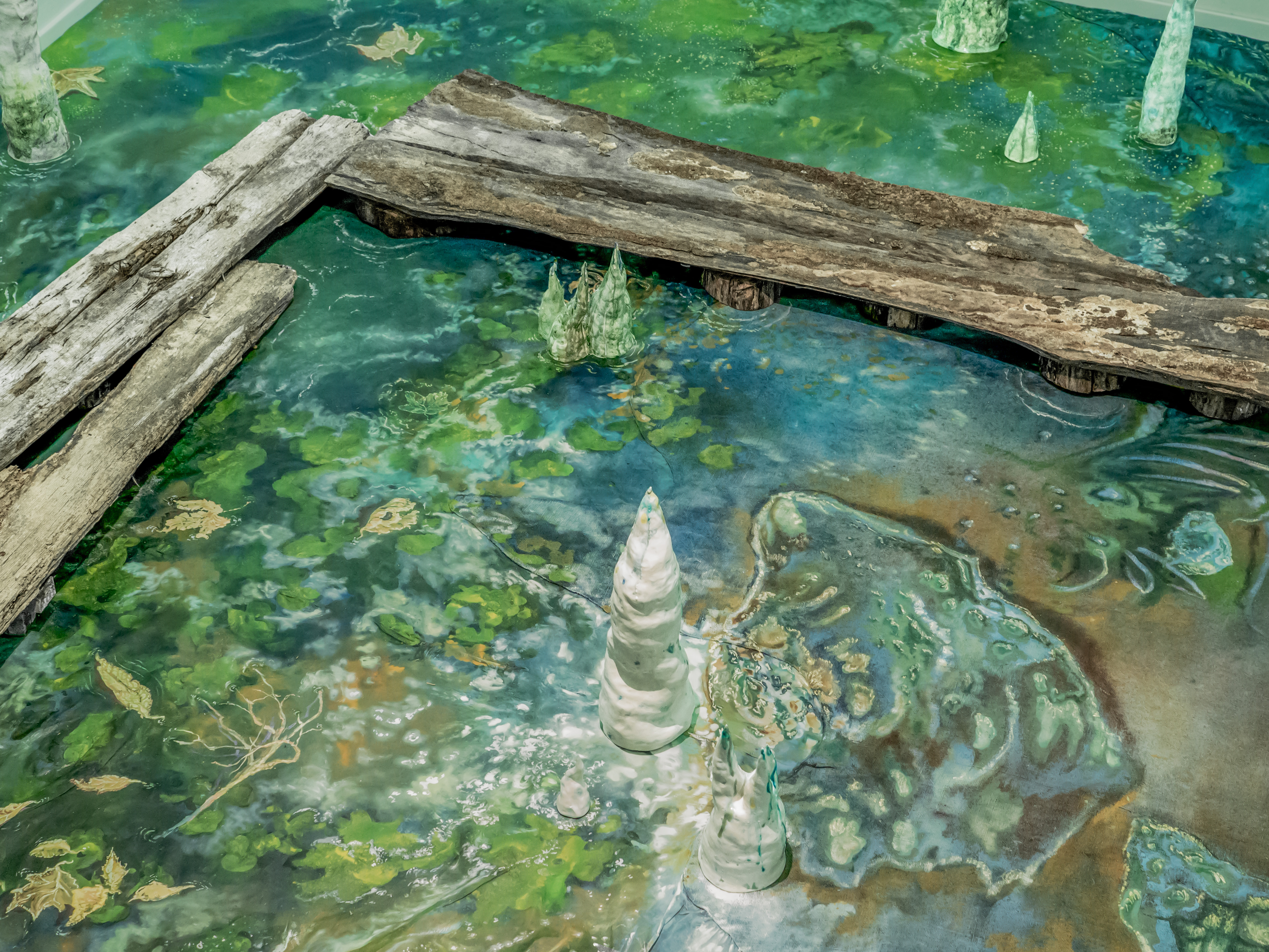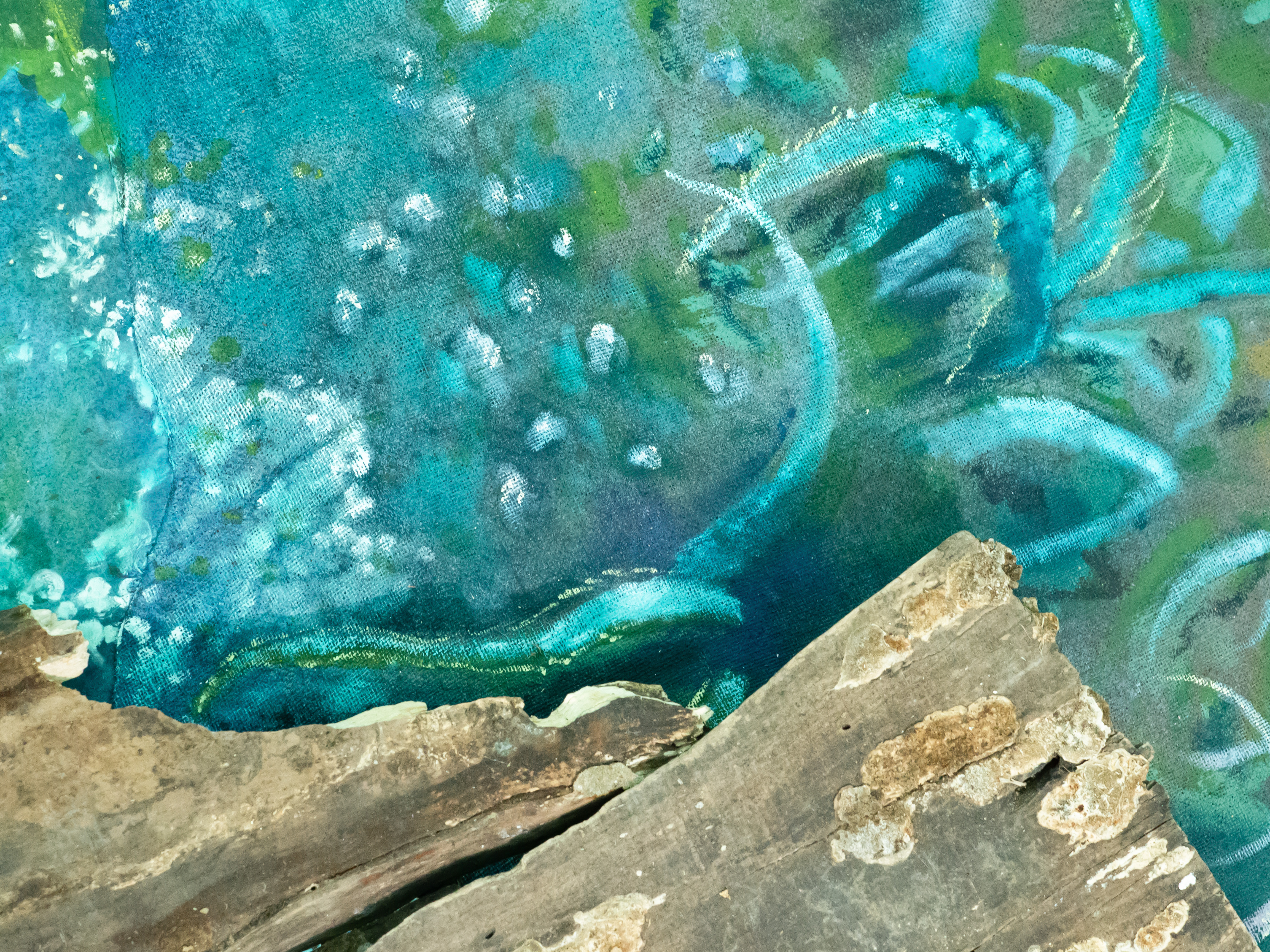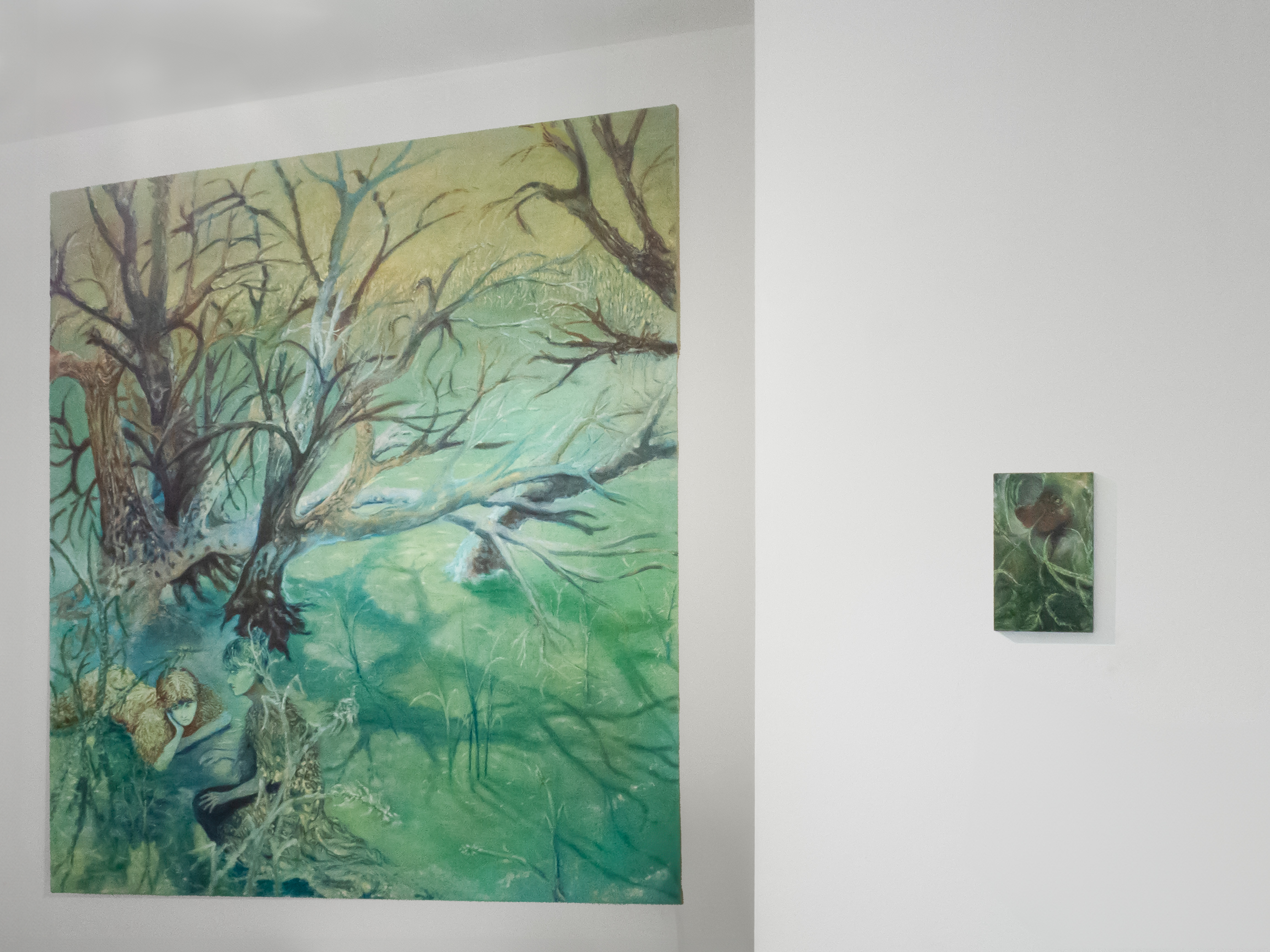 The exhibition explores a poetic and spiritual reflection on nature and landscape, where the human figure is absent, yet felt. Through painting, sculpture, and sound, the artists create a dreamlike, immersive environment. My work captures the interplay of light, space, and texture, highlighting the multisensory experience of the installation.